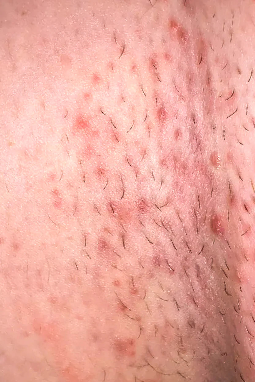 Use a gentle physical exfoliant in the shower to lift dead skin and help prevent ingrowns.